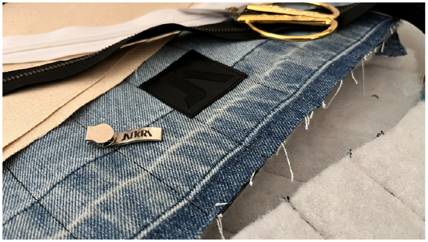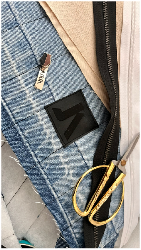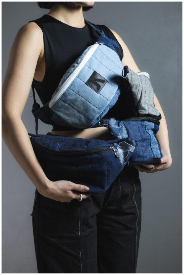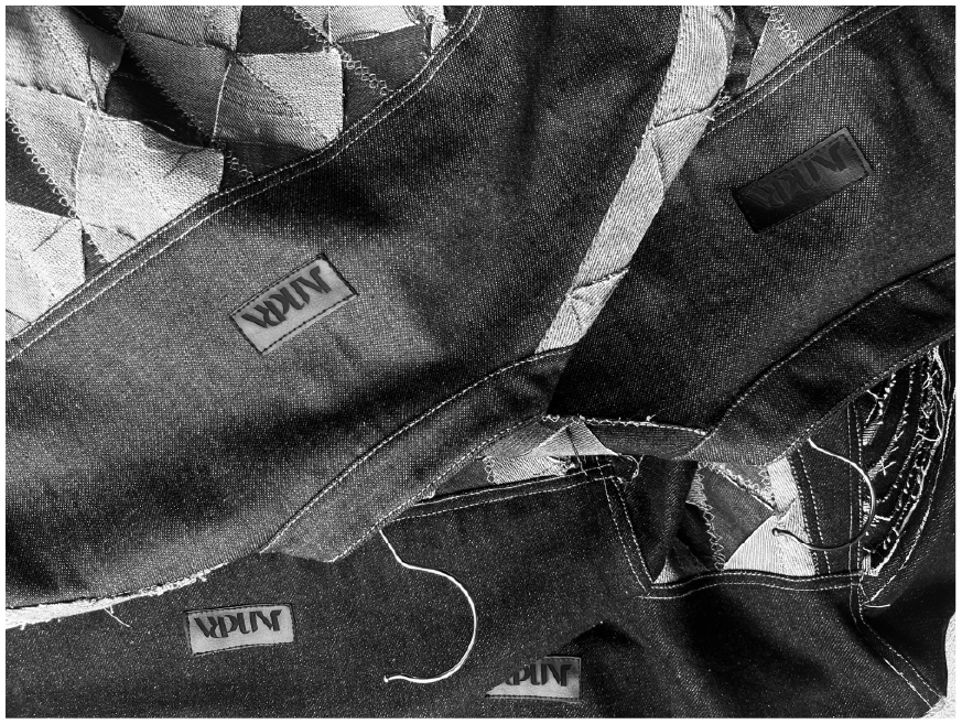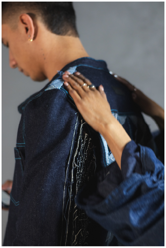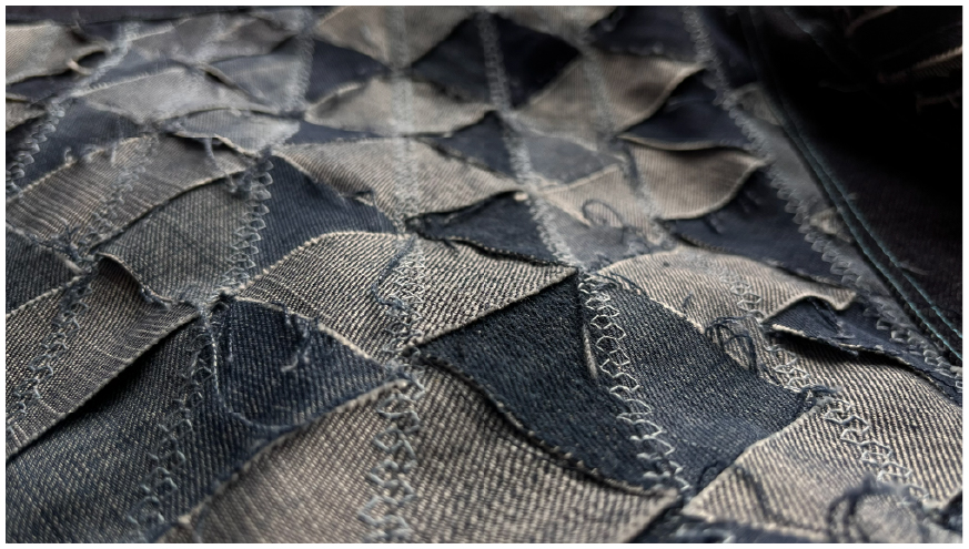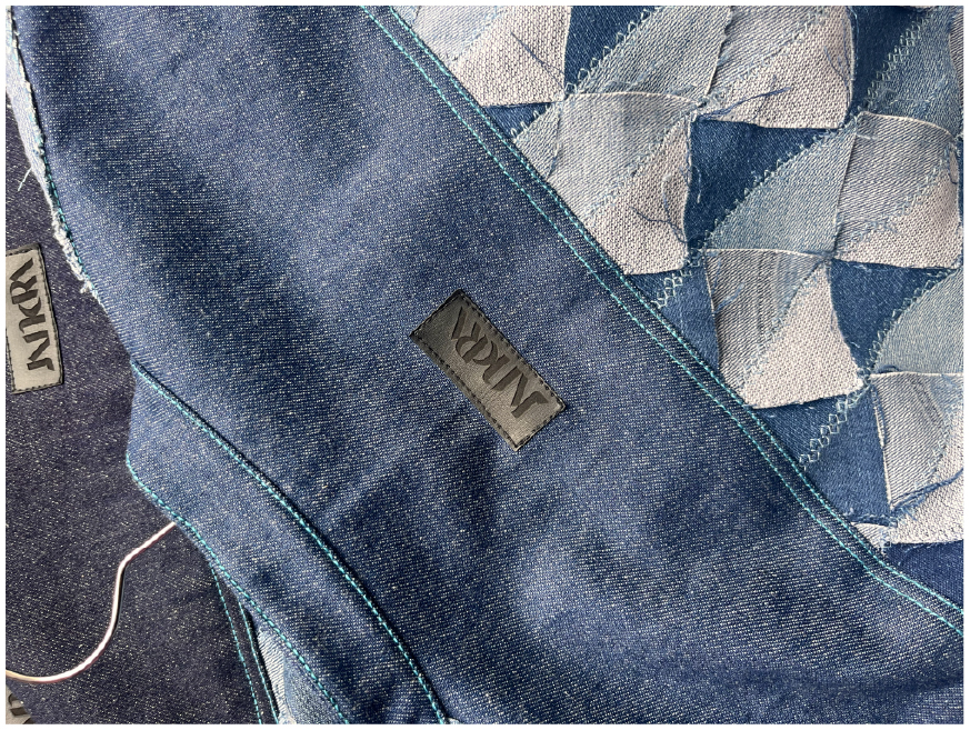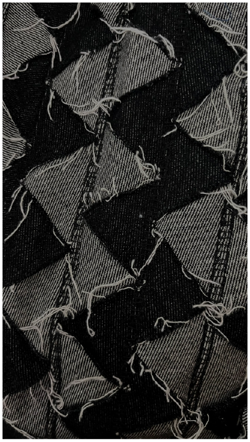 Trabajo principalmente con denim recuperado, un material con historia, huellas y texturas únicas que me permiten crear nuevas estructuras textiles. A través de un proceso manual, desarmo, recompongo y coso cada fragmento hasta transformarlo en una pieza completamente distinta.